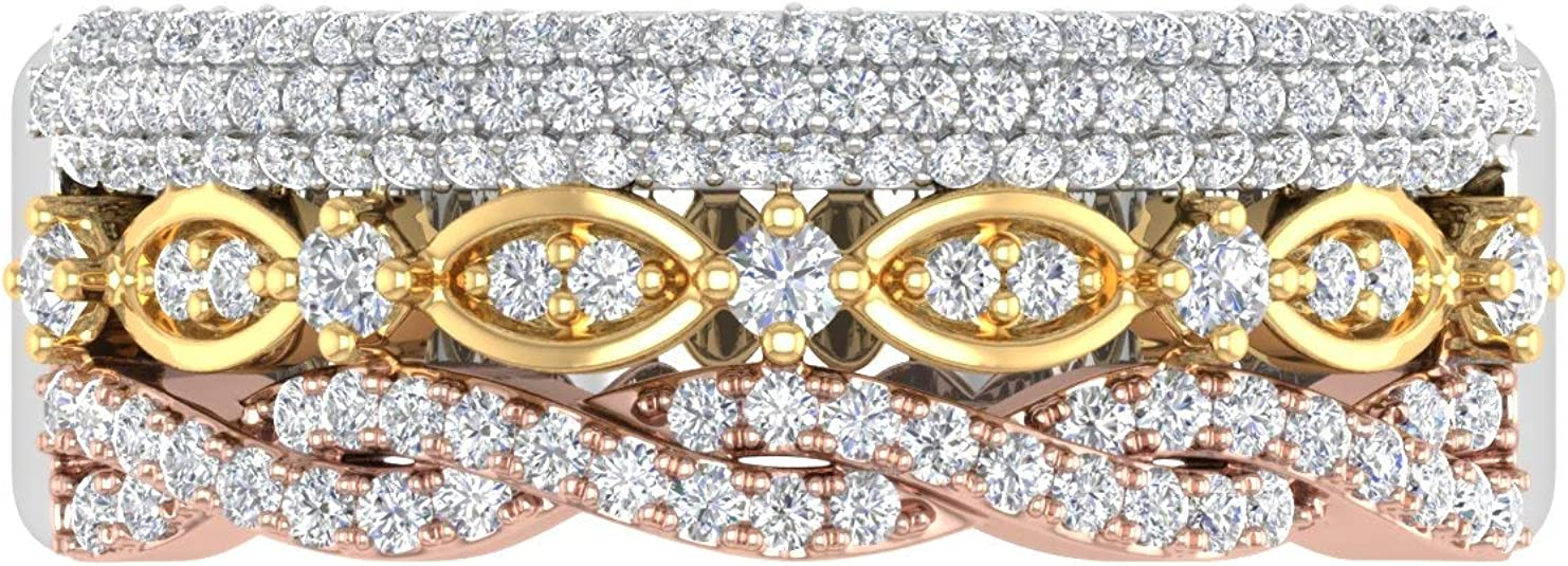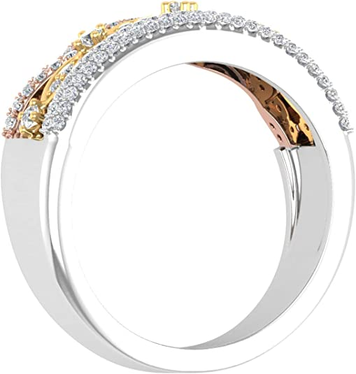 1/2 Carat Diamond Tri Color Wedding Band Ring in 10K Gold