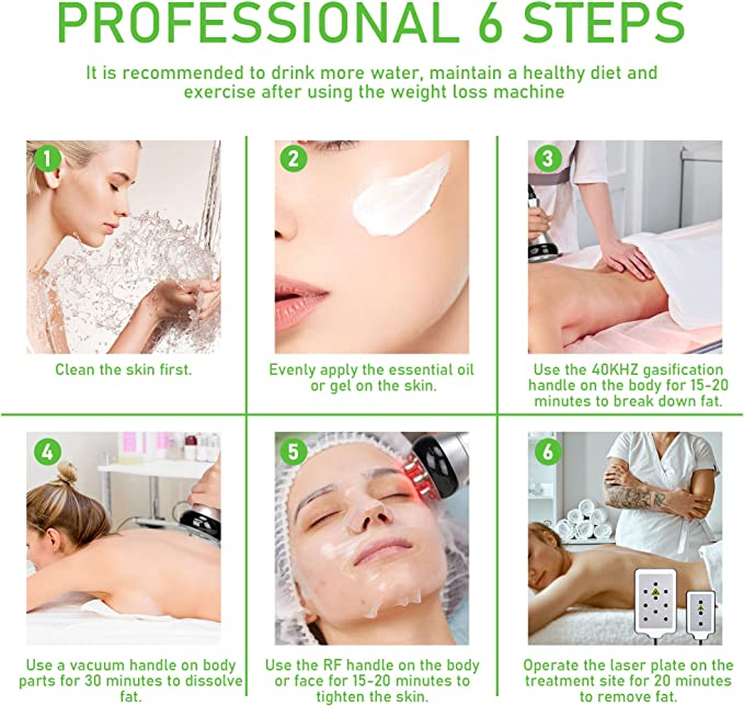 • 【Newest System】- 6IN1 Body sculptin machine adopts latest system,Low energy, safe and effective.Adjustable intensity to meet your demand. Better use with the gel or serum.