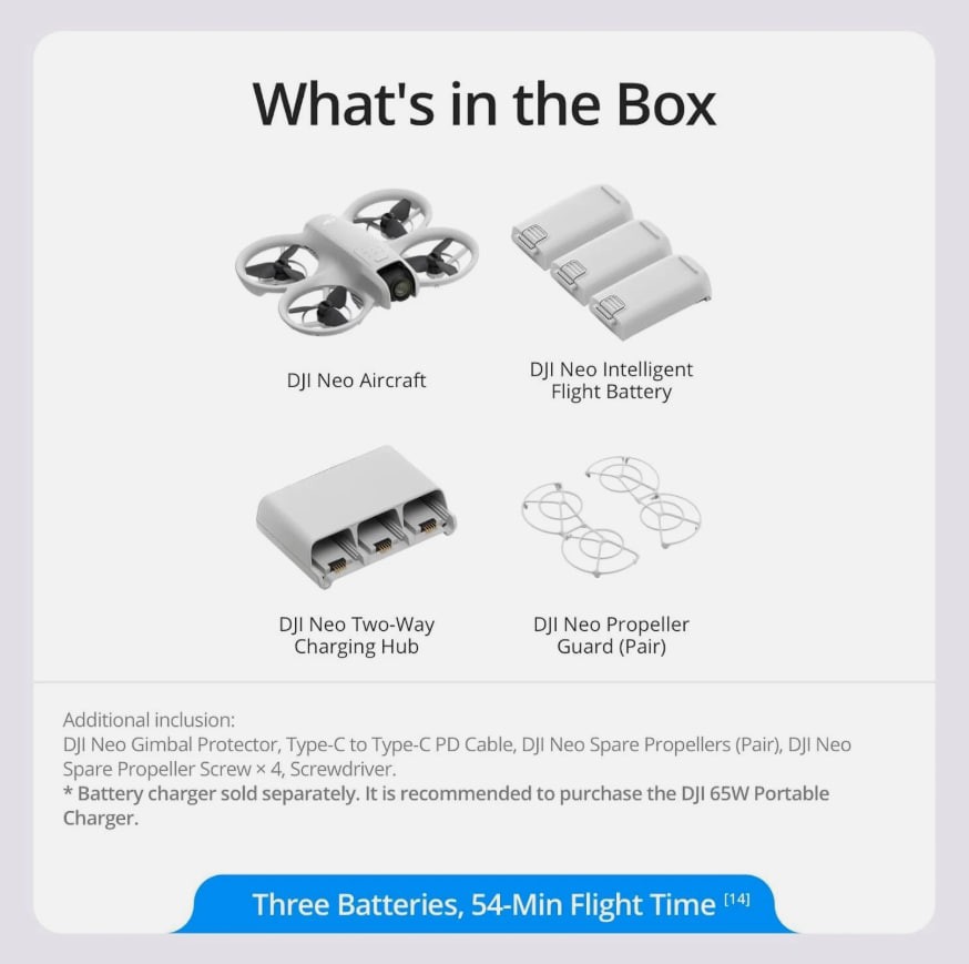 Up to 18 min flight time per battery; combo includes extra batteries, charging hub, prop guards